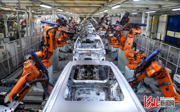1月20日,长城汽车徐水分公司焊装车间,机器人在进行车身焊接组装。 河北日报记者 许佳奇摄 ... -