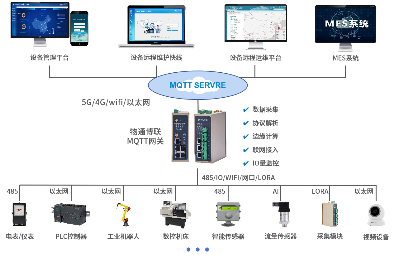 便捷组网:支持5G/4G组网、WIFI组网、LORA组网、VPN组网等,组网方式灵活